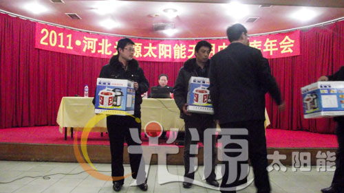 年會對2010年光源太陽能天明能源科技有限公司銷售前三名分別進(jìn)行了表彰,并頒發(fā)了獎品,獲獎經(jīng)銷商心情激動,紛紛發(fā)表獲獎感言,表示2011要進(jìn)一步開拓市場,擴(kuò)大份額,再創(chuàng)佳績!