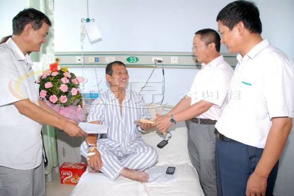 倡議書隨即引起了全體同事的高度關(guān)注,公司領(lǐng)導(dǎo)帶頭,廣大員工踴躍參與,紛紛主動捐款,全體員工用點滴仁愛之心,向達師傅傳遞了一份生命的熱度,譜寫了光源人互助互愛的贊歌。8月15日上午公司領(lǐng)導(dǎo)買來花籃、水果和募集到的近2萬元善款到醫(yī)院看望病中的達師傅,并鼓勵他用積極的心態(tài)戰(zhàn)勝病魔,早日康復(fù)!