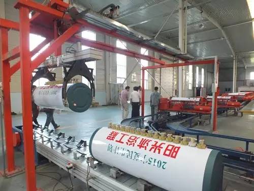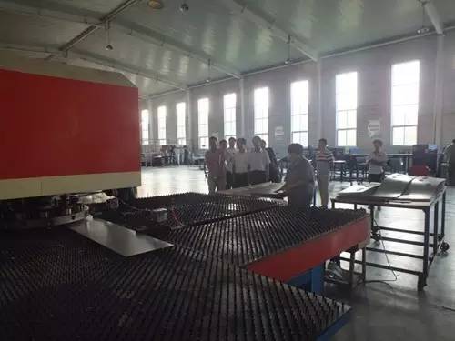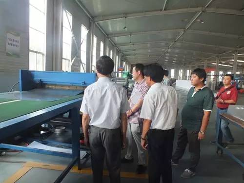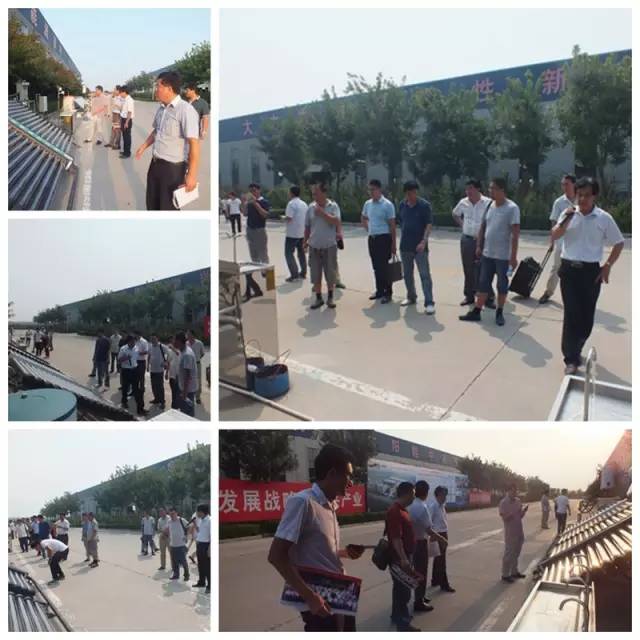 在參觀完太陽(yáng)能真空集熱管制造車(chē)間后又到了太陽(yáng)能工程設(shè)備總裝車(chē)間,先后參觀了全自動(dòng)下料開(kāi)平設(shè)備、轉(zhuǎn)塔式全自動(dòng)數(shù)控沖床生產(chǎn)線、全自動(dòng)外皮雙頭縮口滾花機(jī)、臥式反向積放發(fā)泡生產(chǎn)線、環(huán)戊烷聚氨酯高壓發(fā)泡機(jī)、全自動(dòng)數(shù)控打包生產(chǎn)線以及壁掛太陽(yáng)能生產(chǎn)線等等。