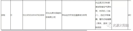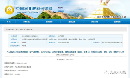 內(nèi)丘縣2019年度清潔取暖【空氣源熱泵、熱風(fēng)機(jī)1拖2、遠(yuǎn)紅外取暖器、蓄熱式電暖器(固體、液體)】采購(gòu)項(xiàng)目入圍項(xiàng)目中標(biāo)公告出爐,河北光源太陽(yáng)能科技有限公司憑借強(qiáng)大的品牌實(shí)力、過(guò)硬的產(chǎn)品質(zhì)量以及親民的售后服務(wù)榮登榜單。入圍產(chǎn)品為:蓄熱式電暖器(液態(tài))。