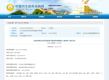 中標(biāo)2019年邢臺(tái)經(jīng)濟(jì)開發(fā)區(qū)燃?xì)獗趻鞝t采購項(xiàng)目(留村鎮(zhèn))!