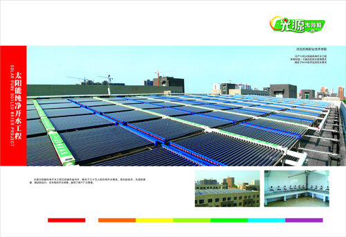 太陽能開水為您帶來生財之道-- 省錢即為賺錢,太陽能開水系統確能為您帶來生財之道。以日產10噸太陽能開水系統為例,設備初投資40萬元左右;全年折合晴好天氣按275天、陰雨天氣95天計算,太陽能系統年運行費用約9.14萬元;單純用電鍋爐年運行費用為32.25萬元;兩者相比太陽能年可節(jié)約費用23.11萬元,兩年內即可收回投資。設備使用壽命15年,期內合計節(jié)省346.65萬元;減排污染物1377噸,對環(huán)境污染治理意義重大。節(jié)能,減排,省錢,何樂而不為。