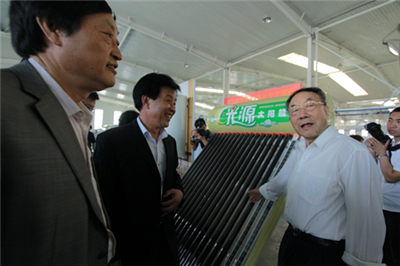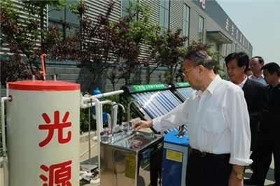 期間,視察團領(lǐng)導(dǎo)在公司董事長李成斌等陪同下,先后視察了公司五連鍍?nèi)詣诱婵展苌a(chǎn)線、臥式環(huán)戊烷發(fā)泡水箱生產(chǎn)線、全自動產(chǎn)品組裝車間等國內(nèi)一流生產(chǎn)線,視察了單機、壁掛等太陽能產(chǎn)品成品庫,同時認真聽取了公司副總邵東坤匯報的關(guān)于公司生產(chǎn)和經(jīng)營環(huán)節(jié)的現(xiàn)狀,和公司發(fā)展規(guī)劃,詳細詢問了公司太陽能熱開水工程業(yè)務(wù)研究和開發(fā)現(xiàn)狀。
