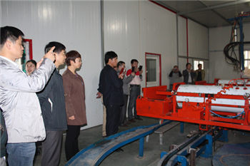 隨后在光源公司董事長李成彬等人引領下,先后參觀考察了水箱車間與產品組裝車間;期間對臥式環(huán)戊烷發(fā)泡水箱生產線、全自動產品組裝車間等國內一流生產線生產設備,產生濃厚的興趣,并對其進行詳細了解以及對生產流程觀看。臥式環(huán)戊烷發(fā)泡水箱生產線采用地下恒溫室,置放七天以上,讓發(fā)泡保溫層充分發(fā)泡,防止二次發(fā)泡,保證后期質量以及品質。 最后參觀光源公司各型號太陽能熱水器以及公司專利產品‘太陽能純凈開水設備’;該設備廣泛適用于大規(guī)模飲水(如部隊、機關院校、幼兒園、企事業(yè)單位、醫(yī)院、賓館、酒店、車站、碼頭等)。將為群眾提供純水開水、溫水飲用。考察團對光源公司“太陽能純凈開水設備”給予高度好評。